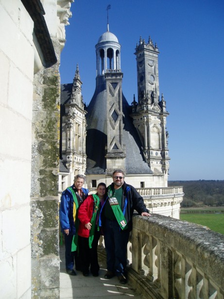 | As members of the Scarborough Royal Guard, we though it would be fun to wear our Green Sashes on the parapets of Chambord. Grammie, Myryha and Chris post up on the 5th level (Almost as high as you can go!) Photo March 2007 | |||||||||||||
