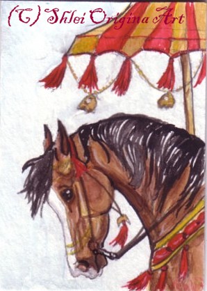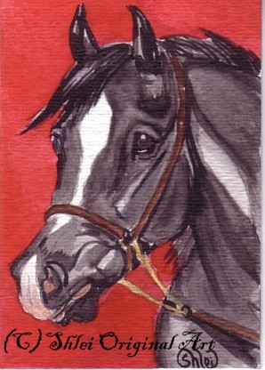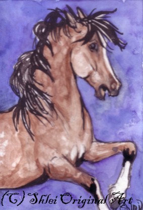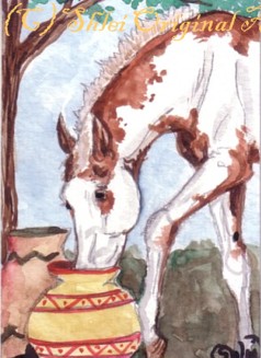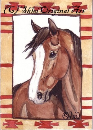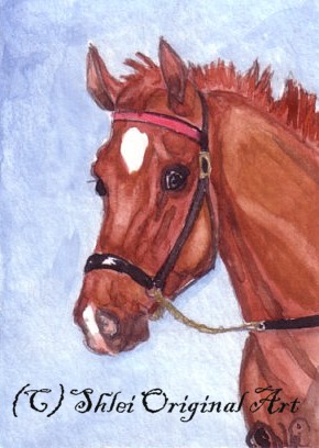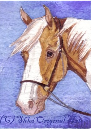 | Thank you to my buyers who have continued to purchase ACEOs, and to everyone who has supported my art! These galleries represent only a small fraction of the nearly 600 cards painted. What are ACEOs? They are tiny works of art - 2.5 x 3.5" - the size of a standard baseball card, by living artists. . They can be any medium - mine are usually original watercolors. I try to capture the spirit of the horse - if people want art that looks like a photo, photo artists are available. Prints (the "E" for Editions) are also allowed. Look for ACEOs on ebay - a wonderful and inexpensive way to collect unique, original art! ACEO - Art Cards, Editions and Originals. |
