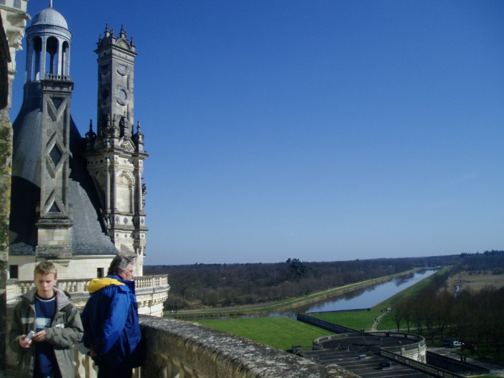 An exterior view of Chambord. Yes, the tiny marks down at the wall are people. |