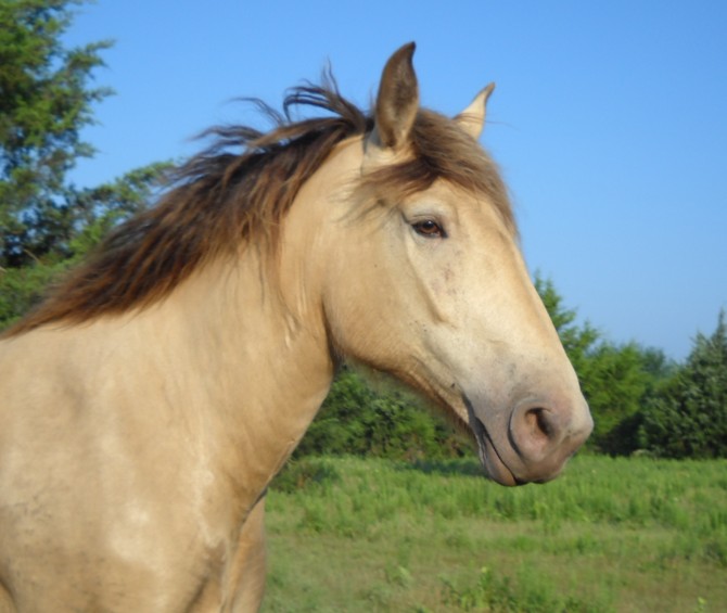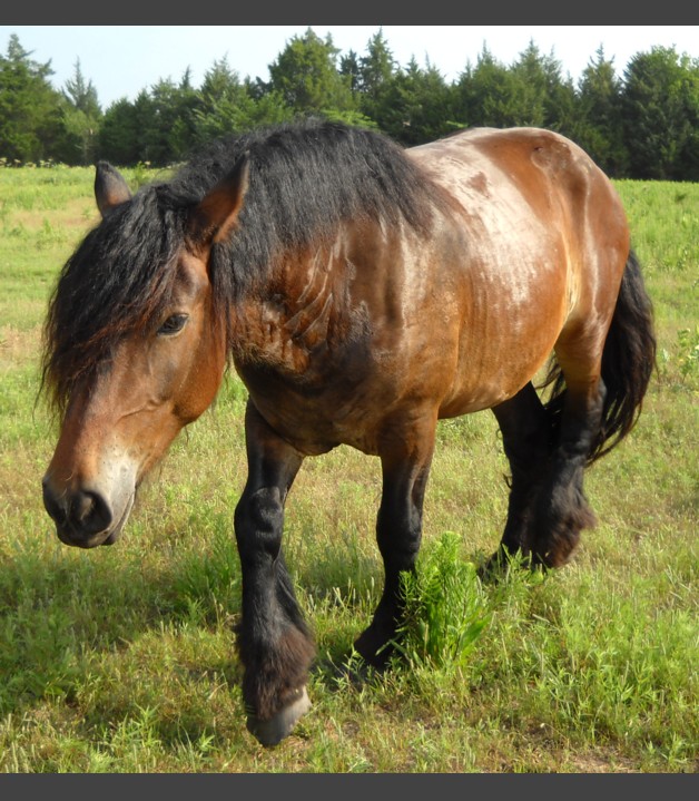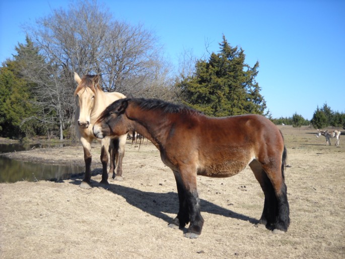 | Sonata, one of three Mulassier (Trait du Poitevin) horses in the USA. Her sire and her dam (Hercule and Merienne) are the other two. She is Four years old. Left - Dec 2009 Right - May 2010 |